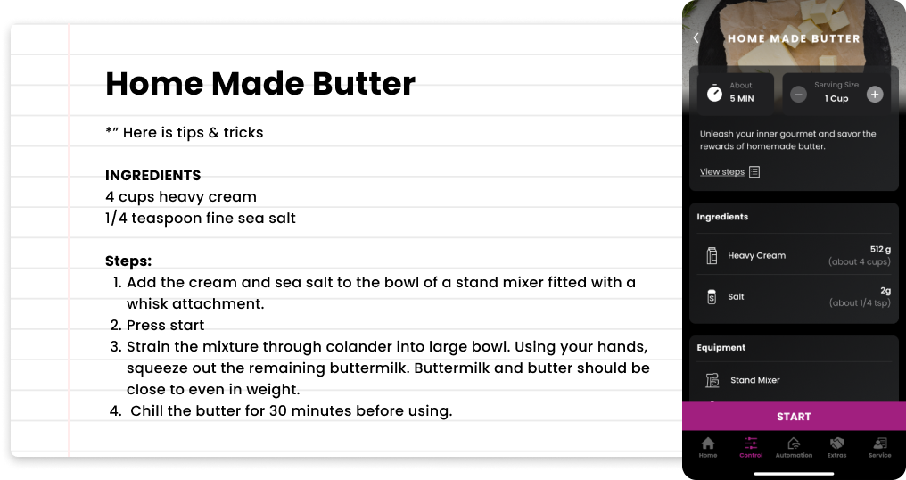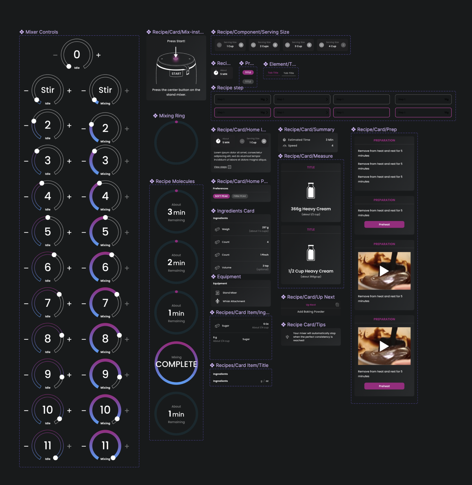The jobs for me was to establish Stand mixer app UX/UI, Such as commissioning, Controls, diagnostic, setting, and implementing consistant design system to accommodate various recipe contents, both present and future.