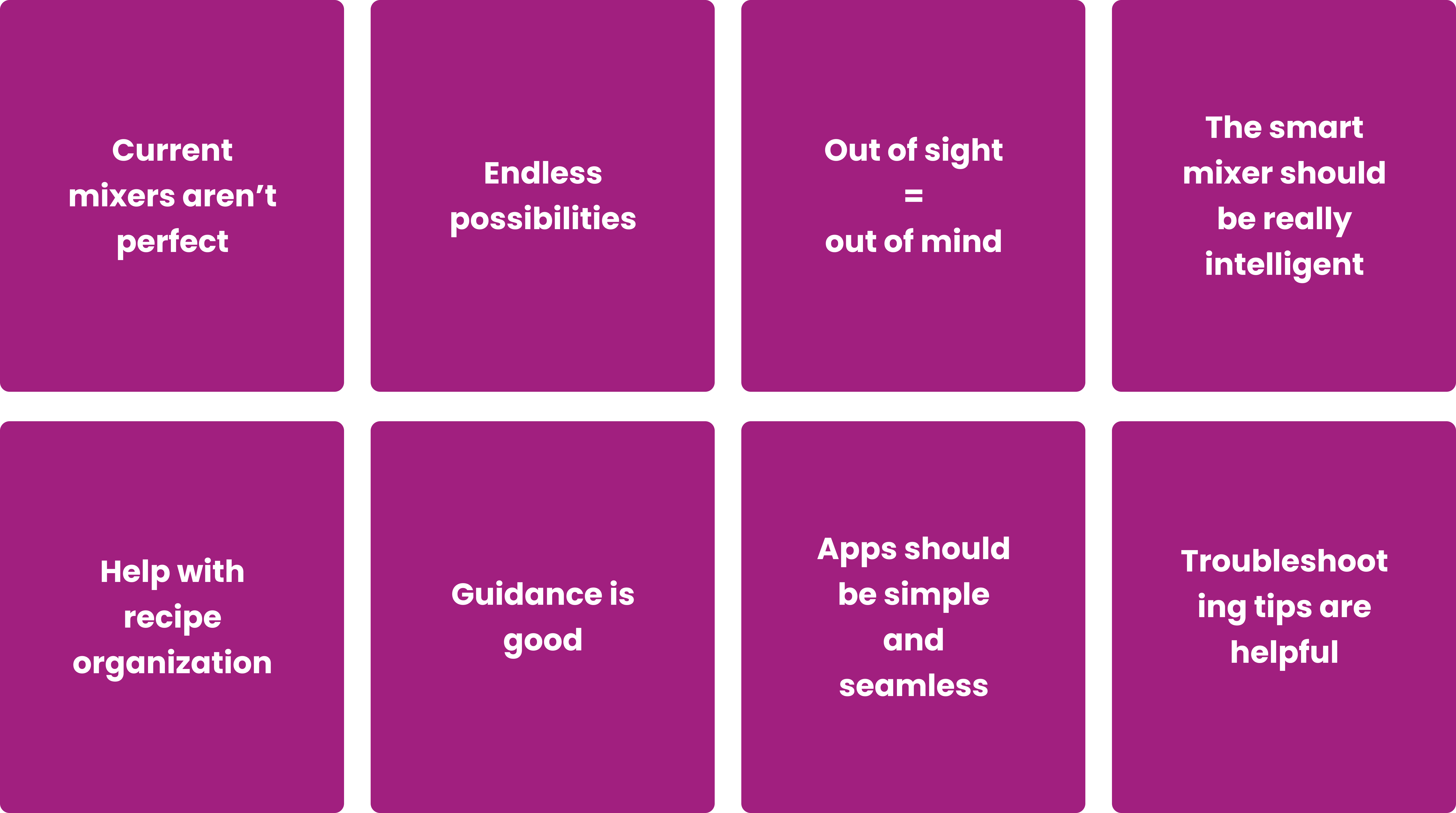 Deep dive into behaviors and challenges in the kitchen and ideate ways in which the stand mixer can make life easier and more enjoyable for the baking/cooking enthusiast who has a desire to learn.