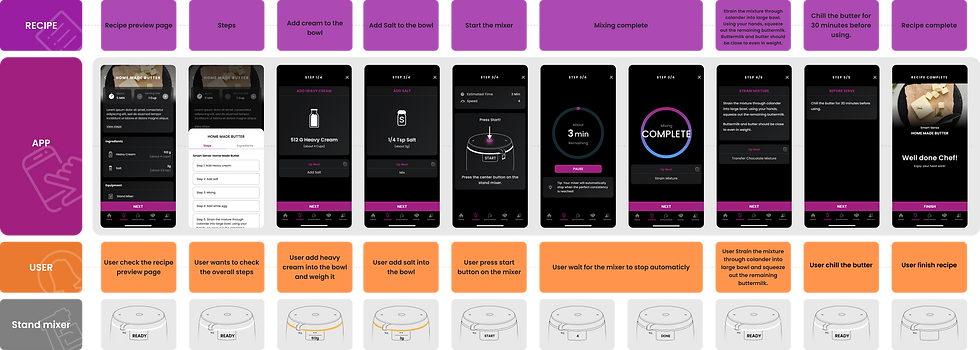 In order to ensure the product launches with meaningful feature and benefits that resonate with consumers, we ideated seveals functions in app to not only meets but exceeds consumer needs and expectations. Designers took the task of designing user flows to represent features that might be included in the future phase. As the result, the co-creation team is able to dive deep into behavior and challenges in the kitchen and generate ways in which the product can make life easier and more enjoyable.