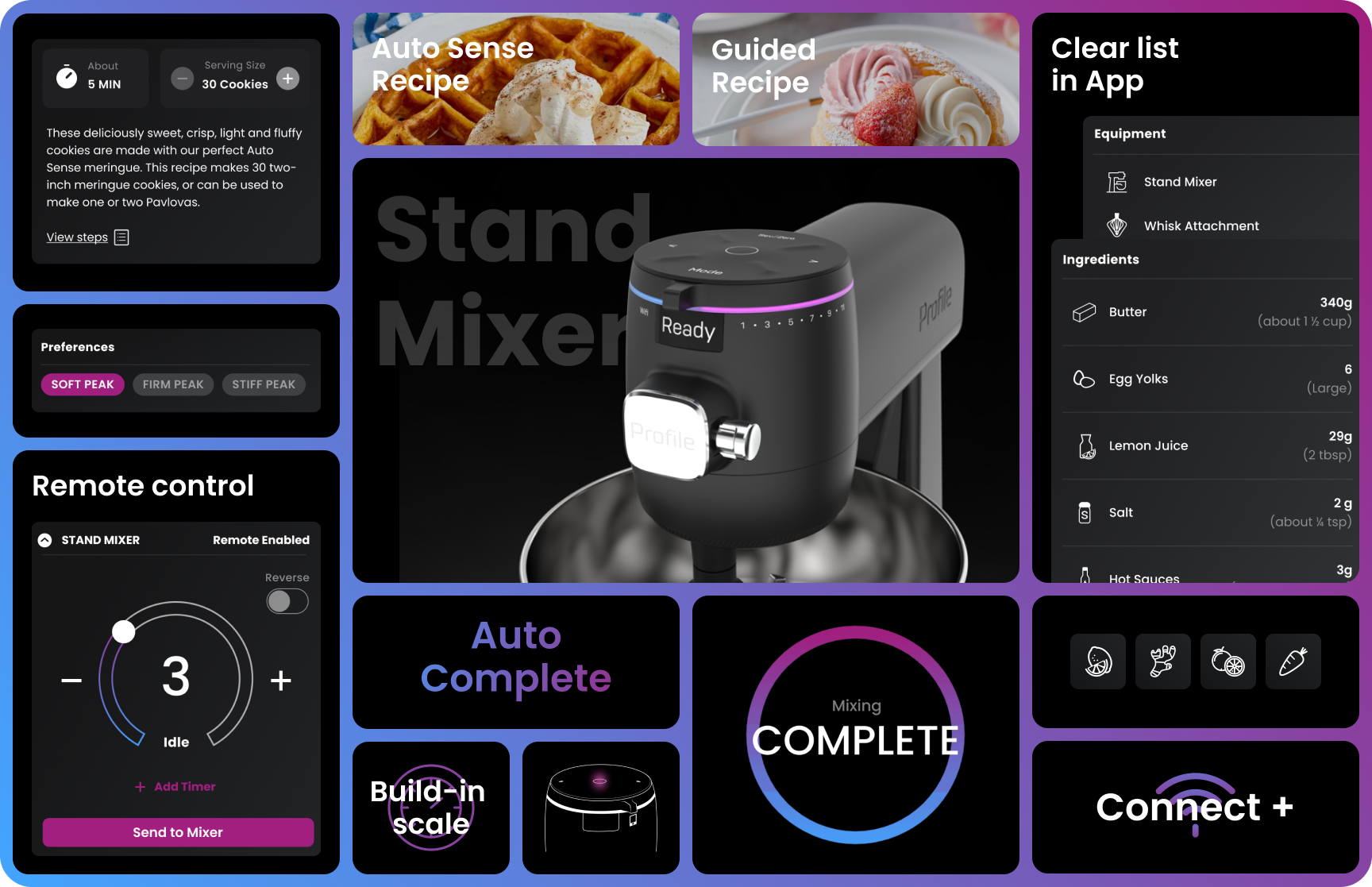 Baking is a time-consuming act of love. It requires precision and is perceived as being ‘less forgiving’ than cooking. A stand mixer that can speed up the process and help take the guesswork out of baking is an appealing proposition. We wish comsumers can be excited by the endless possibilities this mixer can provide and believe that it will help them learn new skills and create new desserts and dishes to share with family and friends.